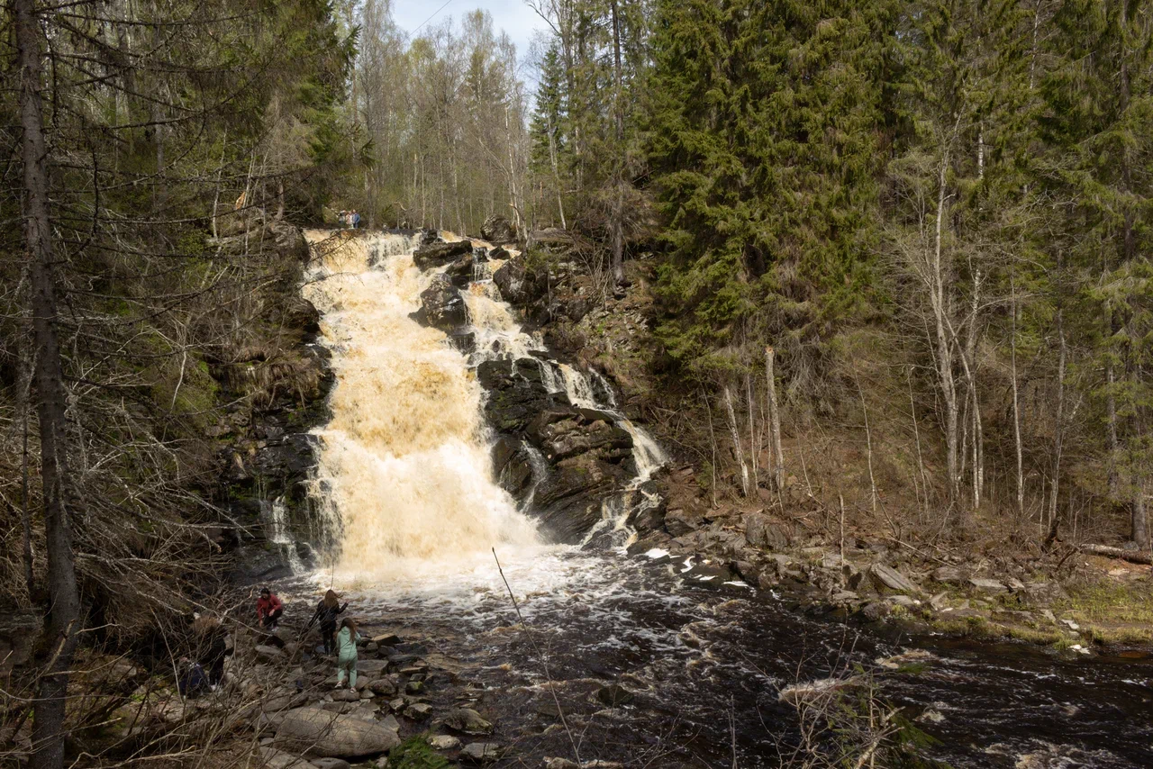 Ахвенкоски — один из самых живописных водопадов Карелии, словно вырвавшийся из страниц скандинавской сказки. Его шумные каскады падают с чёрных валунов, обрамлённых хвойным лесом, как сверкающее кружево на каменной рубашке. Вода здесь кристально чистая, а пейзажи — кинематографичные: не случайно именно тут снимали сцены для фильмов «А зори здесь тихие» и «Темный мир». Рядом — удобные мостики и тропы, а в воздухе витает аромат сосны и прохлада северной свежести. Ахвенкоски — это место, где природа говорит голосом водопада.