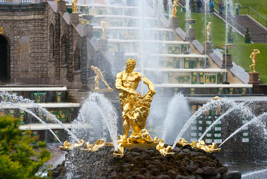 Петергоф — словно ожившая сказка. Величественный Большой дворец сверкает золотом, зеркалами и лепниной. Шаг за шагом, зал за залом — и вот вы стоите у знаменитого Самсона, извергающего мощную струю воды прямо в небо. Это — Большой каскад, сердце Петергофа.