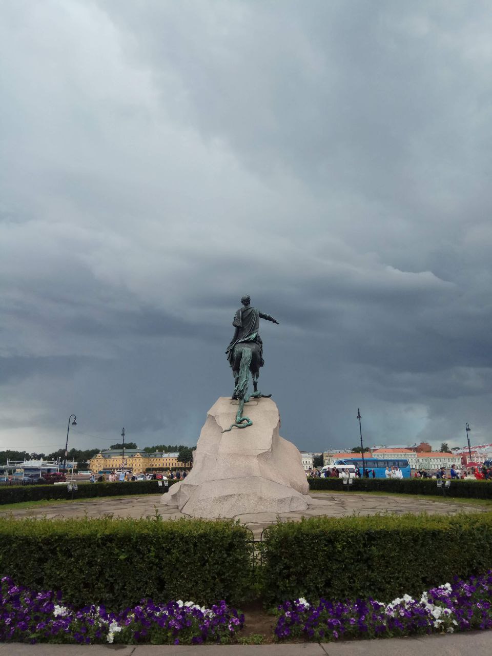 Следующая остановка — Сенатская площадь. Пространство, где история не просто была — она жила, кипела и оставляла следы. В центре — бронзовая фигура Петра Великого, ставшая одним из самых узнаваемых образов не только города, но и всей страны.